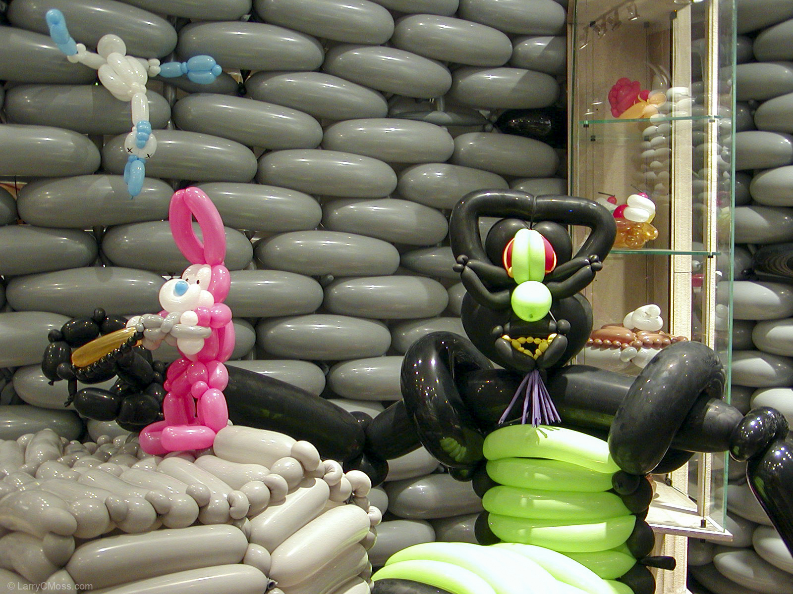 Behind the scenes, we learned a lot. There was much more room to experiment than there had been on the previous big projects. We developed systems for building the big wall pieces, and learned how balloon sculptures scaled. We learned how much our existing tools could handle, and that Richard Hughson, the MacGyver of the crew was an essential team member, even if he never touched a balloon. He could fix anything, it seemed, and even started designing tools for future projects based on how things were used and, more importantly, how we broke them. He always seemed to have solutions to new problems the moment they appeared.