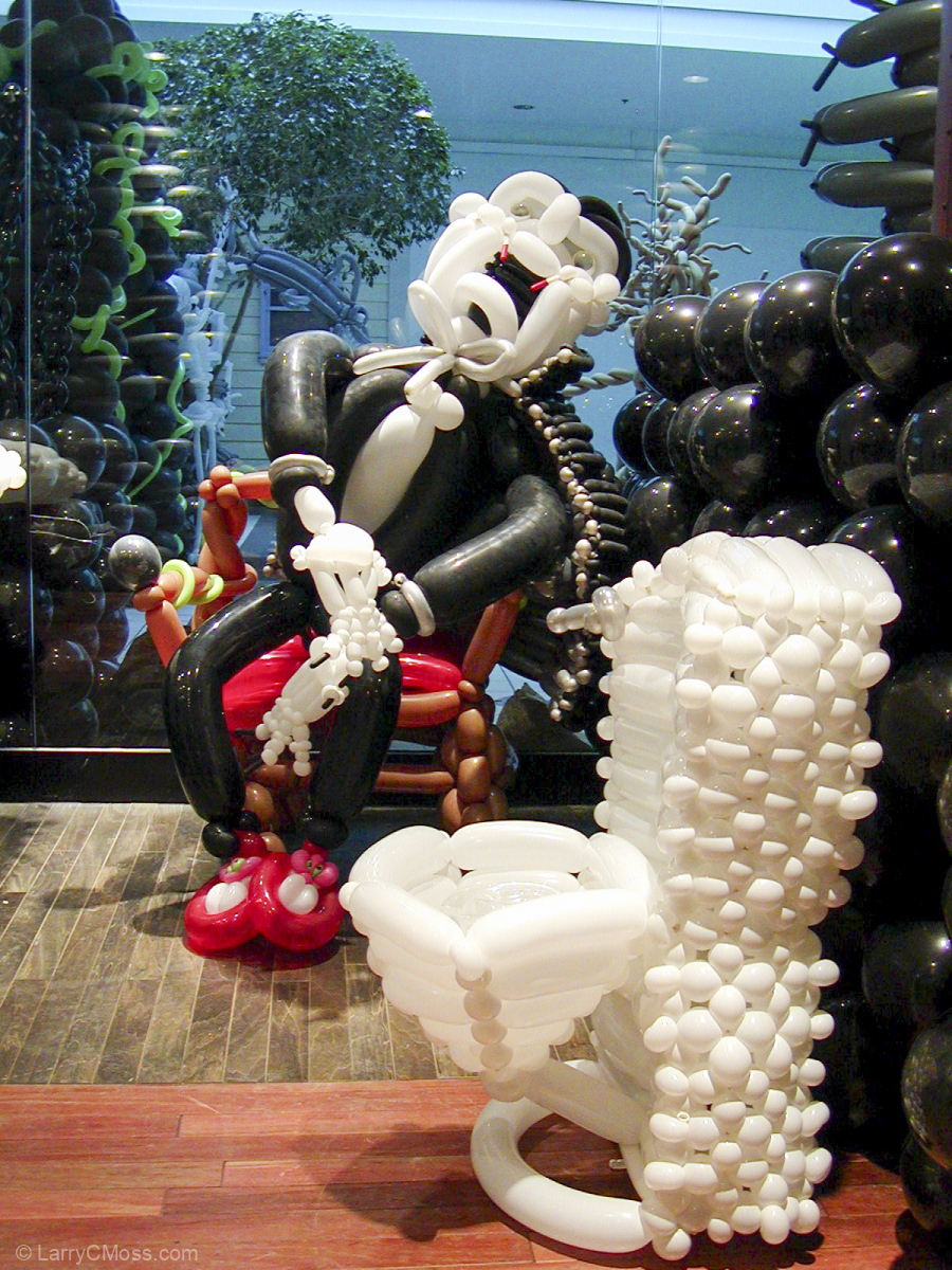 Behind the scenes, we learned a lot. There was much more room to experiment than there had been on the previous big projects. We developed systems for building the big wall pieces, and learned how balloon sculptures scaled. We learned how much our existing tools could handle, and that Richard Hughson, the MacGyver of the crew was an essential team member, even if he never touched a balloon. He could fix anything, it seemed, and even started designing tools for future projects based on how things were used and, more importantly, how we broke them. He always seemed to have solutions to new problems the moment they appeared.