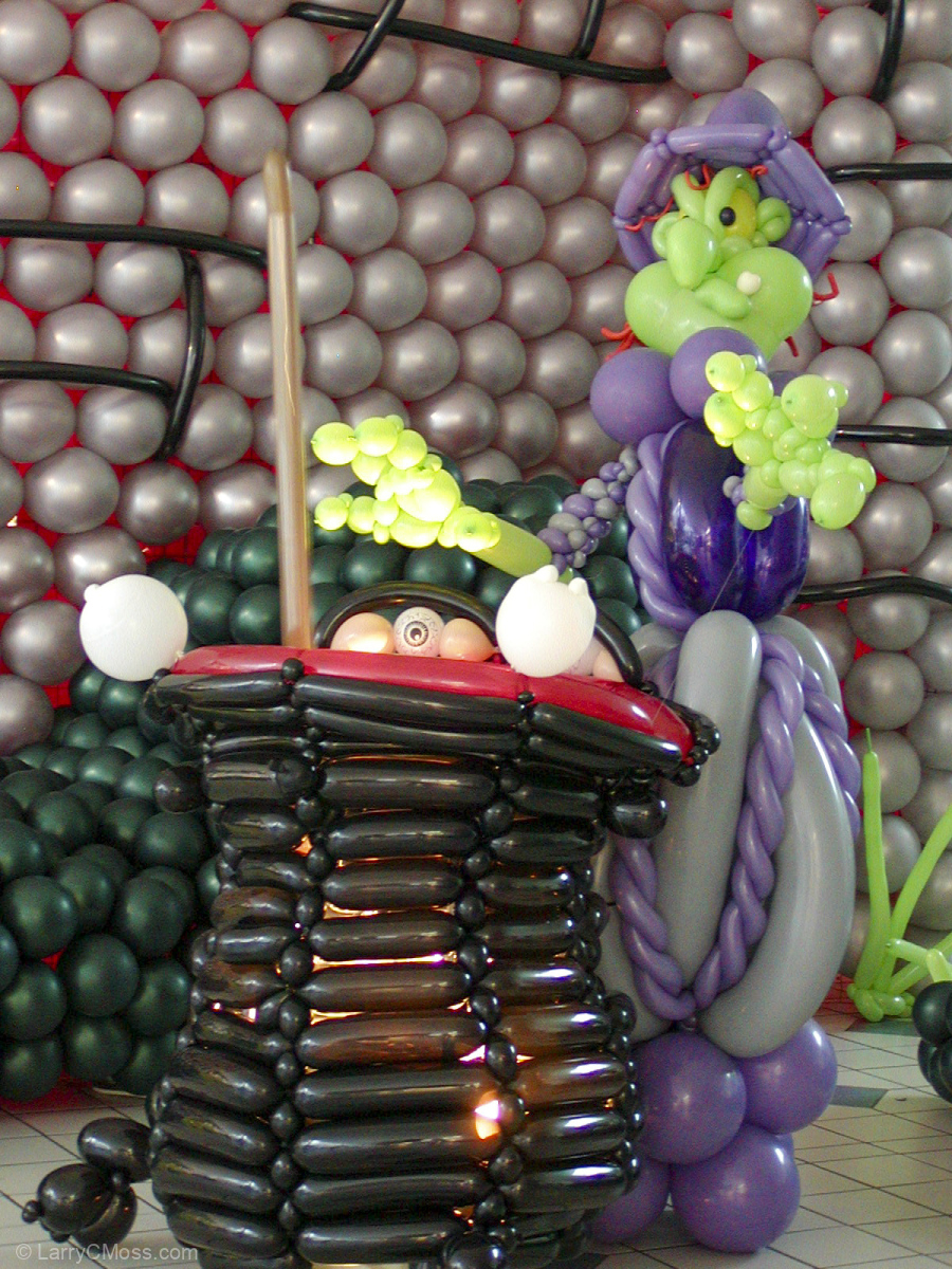 Behind the scenes, we learned a lot. There was much more room to experiment than there had been on the previous big projects. We developed systems for building the big wall pieces, and learned how balloon sculptures scaled. We learned how much our existing tools could handle, and that Richard Hughson, the MacGyver of the crew was an essential team member, even if he never touched a balloon. He could fix anything, it seemed, and even started designing tools for future projects based on how things were used and, more importantly, how we broke them. He always seemed to have solutions to new problems the moment they appeared.