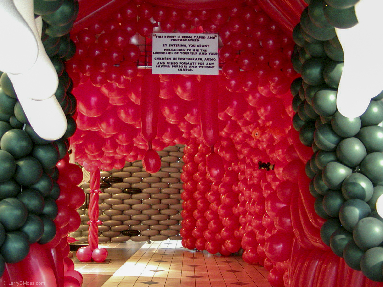 Behind the scenes, we learned a lot. There was much more room to experiment than there had been on the previous big projects. We developed systems for building the big wall pieces, and learned how balloon sculptures scaled. We learned how much our existing tools could handle, and that Richard Hughson, the MacGyver of the crew was an essential team member, even if he never touched a balloon. He could fix anything, it seemed, and even started designing tools for future projects based on how things were used and, more importantly, how we broke them. He always seemed to have solutions to new problems the moment they appeared.