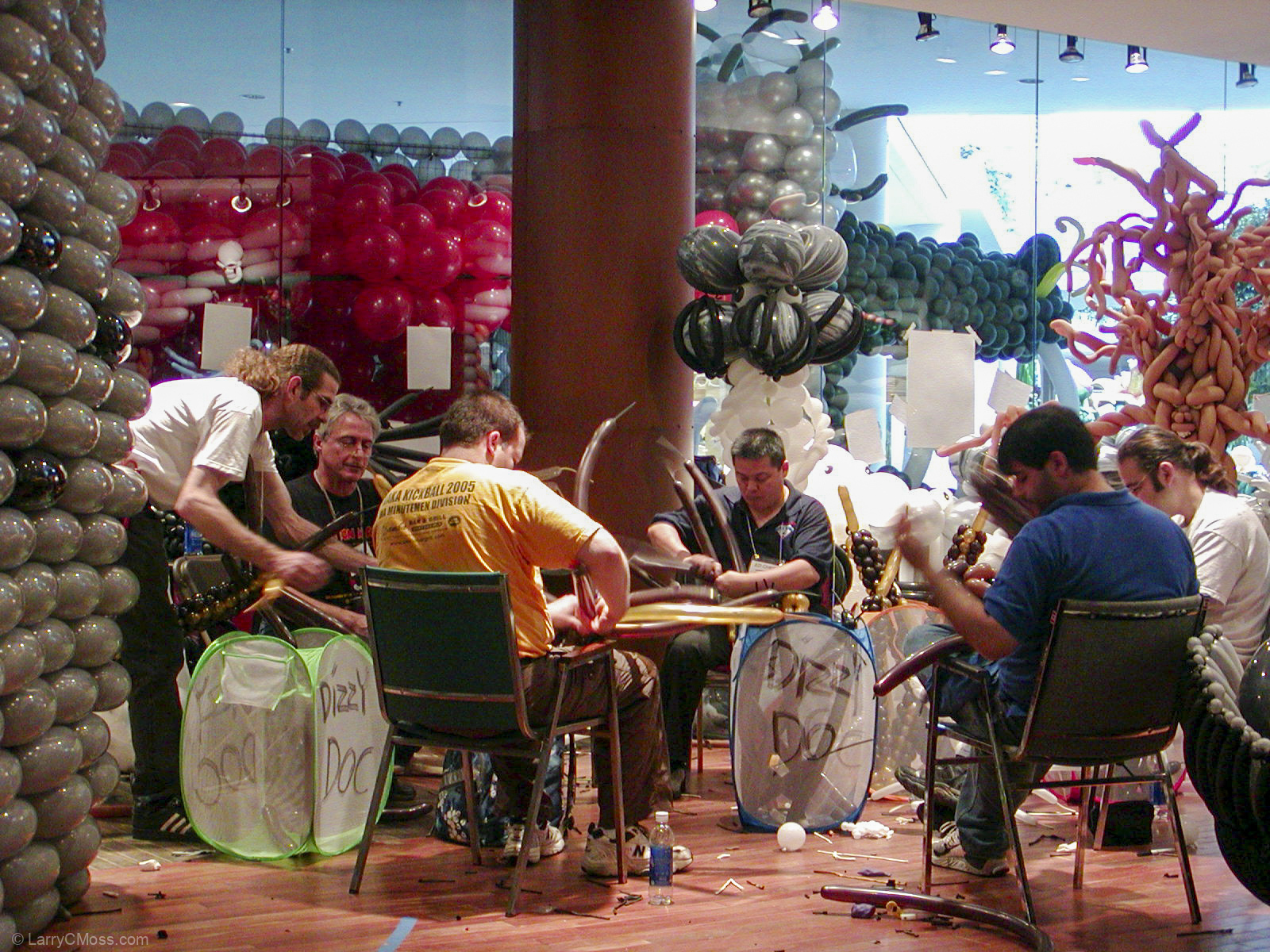 Behind the scenes, we learned a lot. There was much more room to experiment than there had been on the previous big projects. We developed systems for building the big wall pieces, and learned how balloon sculptures scaled. We learned how much our existing tools could handle, and that Richard Hughson, the MacGyver of the crew was an essential team member, even if he never touched a balloon. He could fix anything, it seemed, and even started designing tools for future projects based on how things were used and, more importantly, how we broke them. He always seemed to have solutions to new problems the moment they appeared.