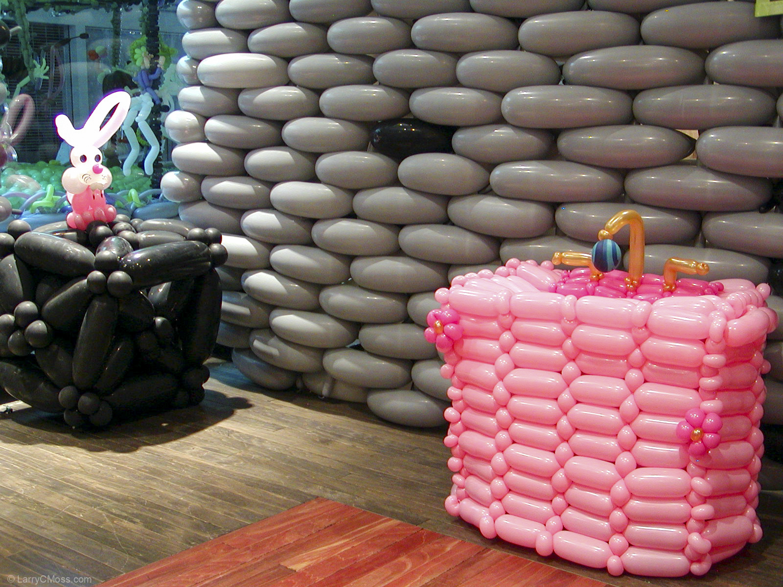 Behind the scenes, we learned a lot. There was much more room to experiment than there had been on the previous big projects. We developed systems for building the big wall pieces, and learned how balloon sculptures scaled. We learned how much our existing tools could handle, and that Richard Hughson, the MacGyver of the crew was an essential team member, even if he never touched a balloon. He could fix anything, it seemed, and even started designing tools for future projects based on how things were used and, more importantly, how we broke them. He always seemed to have solutions to new problems the moment they appeared.