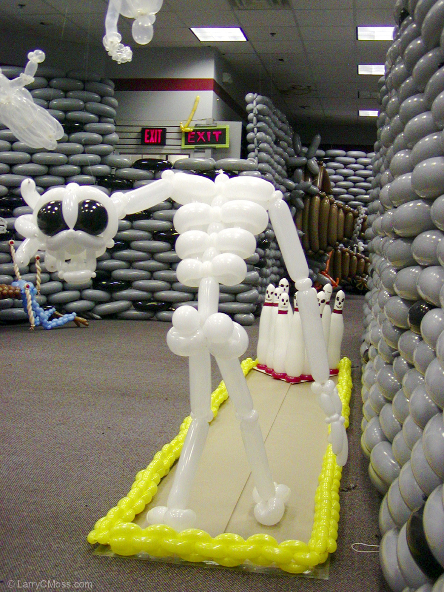 Behind the scenes, we learned a lot. There was much more room to experiment than there had been on the previous big projects. We developed systems for building the big wall pieces, and learned how balloon sculptures scaled. We learned how much our existing tools could handle, and that Richard Hughson, the MacGyver of the crew was an essential team member, even if he never touched a balloon. He could fix anything, it seemed, and even started designing tools for future projects based on how things were used and, more importantly, how we broke them. He always seemed to have solutions to new problems the moment they appeared.