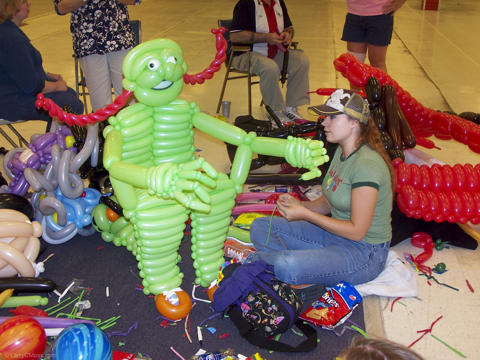 Behind the scenes, we learned a lot. There was much more room to experiment than there had been on the previous big projects. We developed systems for building the big wall pieces, and learned how balloon sculptures scaled. We learned how much our existing tools could handle, and that Richard Hughson, the MacGyver of the crew was an essential team member, even if he never touched a balloon. He could fix anything, it seemed, and even started designing tools for future projects based on how things were used and, more importantly, how we broke them. He always seemed to have solutions to new problems the moment they appeared.