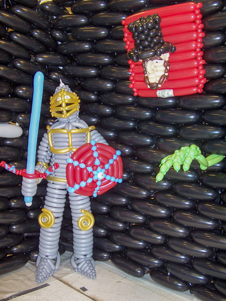Behind the scenes, we learned a lot. There was much more room to experiment than there had been on the previous big projects. We developed systems for building the big wall pieces, and learned how balloon sculptures scaled. We learned how much our existing tools could handle, and that Richard Hughson, the MacGyver of the crew was an essential team member, even if he never touched a balloon. He could fix anything, it seemed, and even started designing tools for future projects based on how things were used and, more importantly, how we broke them. He always seemed to have solutions to new problems the moment they appeared.