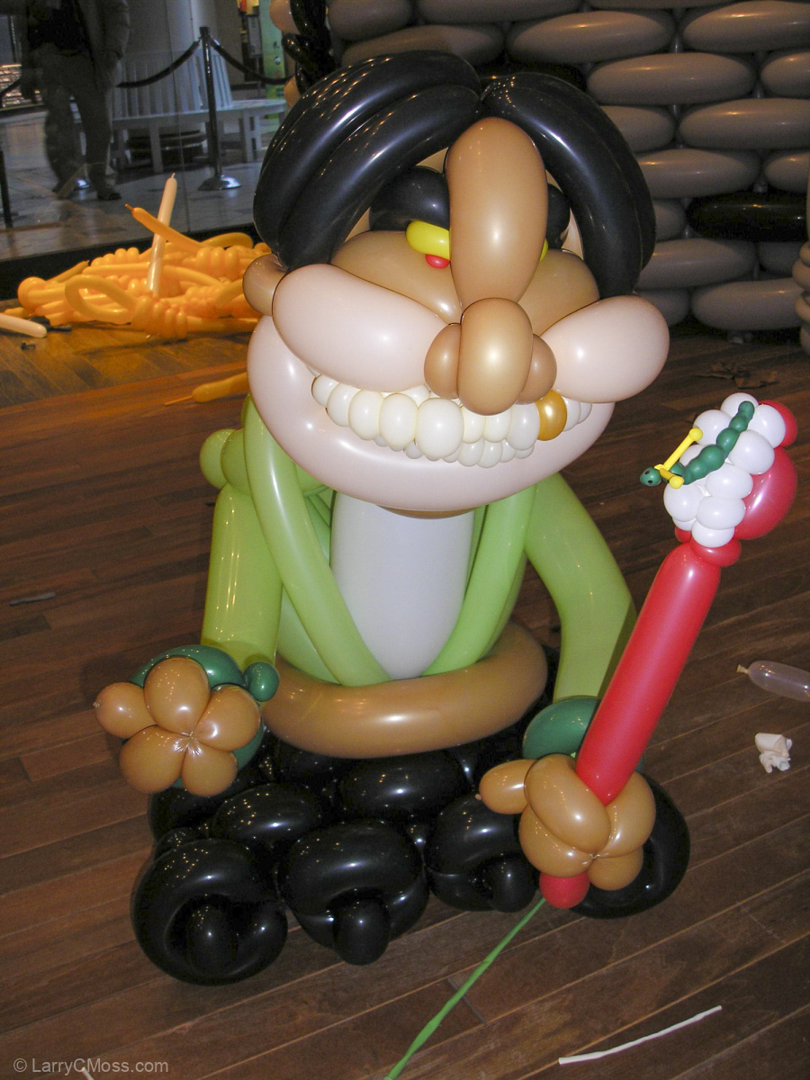Behind the scenes, we learned a lot. There was much more room to experiment than there had been on the previous big projects. We developed systems for building the big wall pieces, and learned how balloon sculptures scaled. We learned how much our existing tools could handle, and that Richard Hughson, the MacGyver of the crew was an essential team member, even if he never touched a balloon. He could fix anything, it seemed, and even started designing tools for future projects based on how things were used and, more importantly, how we broke them. He always seemed to have solutions to new problems the moment they appeared.
