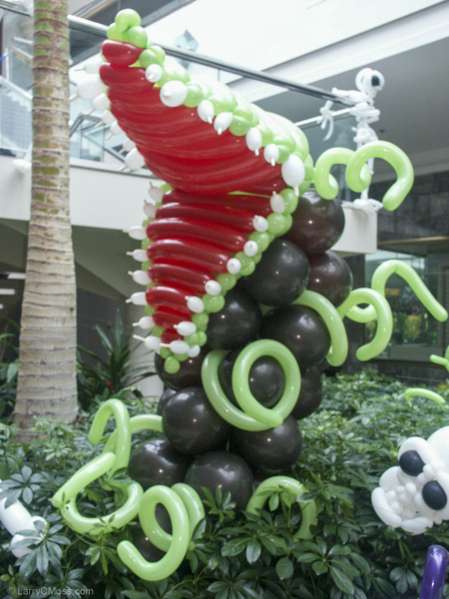 Behind the scenes, we learned a lot. There was much more room to experiment than there had been on the previous big projects. We developed systems for building the big wall pieces, and learned how balloon sculptures scaled. We learned how much our existing tools could handle, and that Richard Hughson, the MacGyver of the crew was an essential team member, even if he never touched a balloon. He could fix anything, it seemed, and even started designing tools for future projects based on how things were used and, more importantly, how we broke them. He always seemed to have solutions to new problems the moment they appeared.