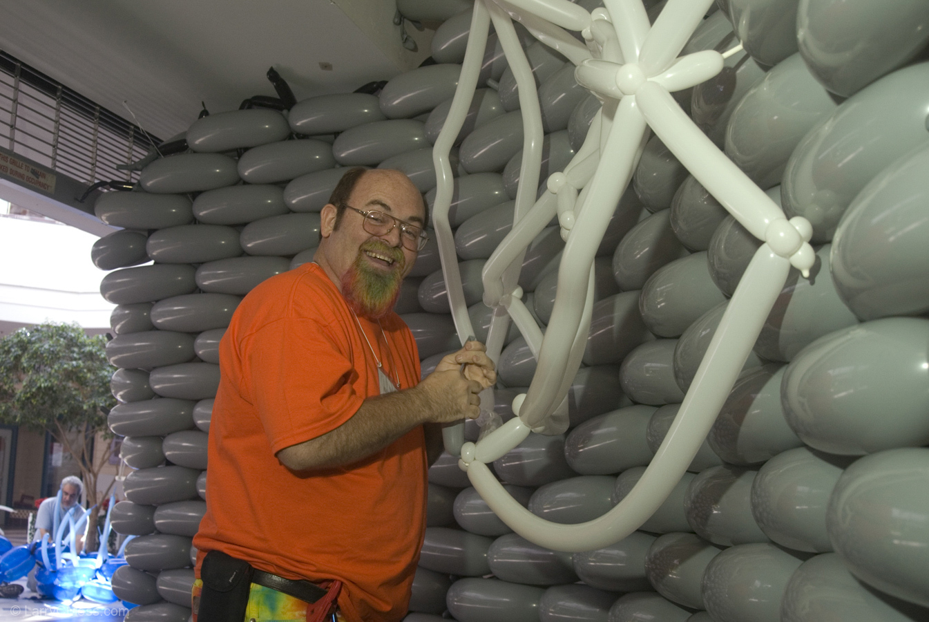 Behind the scenes, we learned a lot. There was much more room to experiment than there had been on the previous big projects. We developed systems for building the big wall pieces, and learned how balloon sculptures scaled. We learned how much our existing tools could handle, and that Richard Hughson, the MacGyver of the crew was an essential team member, even if he never touched a balloon. He could fix anything, it seemed, and even started designing tools for future projects based on how things were used and, more importantly, how we broke them. He always seemed to have solutions to new problems the moment they appeared.