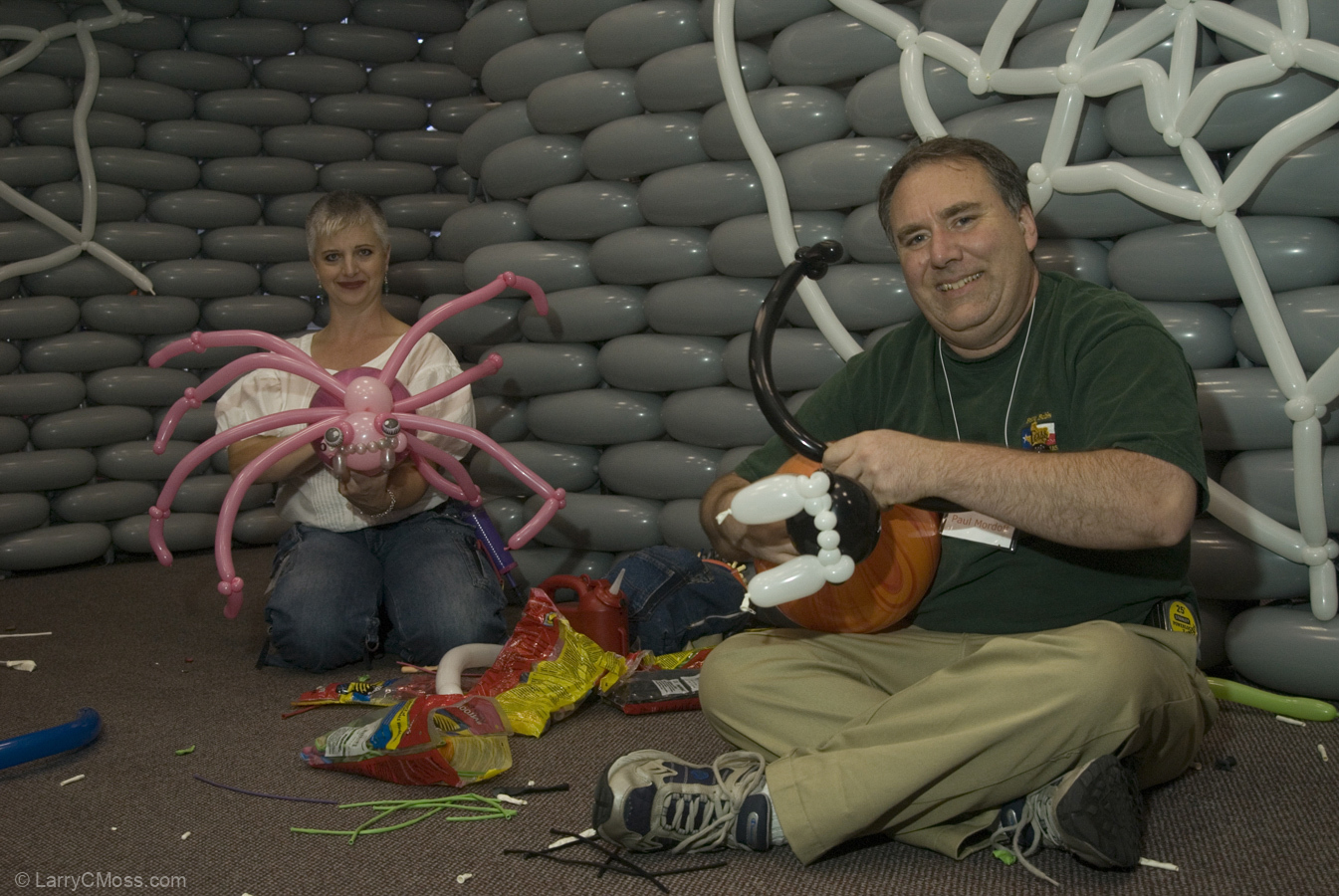Behind the scenes, we learned a lot. There was much more room to experiment than there had been on the previous big projects. We developed systems for building the big wall pieces, and learned how balloon sculptures scaled. We learned how much our existing tools could handle, and that Richard Hughson, the MacGyver of the crew was an essential team member, even if he never touched a balloon. He could fix anything, it seemed, and even started designing tools for future projects based on how things were used and, more importantly, how we broke them. He always seemed to have solutions to new problems the moment they appeared.