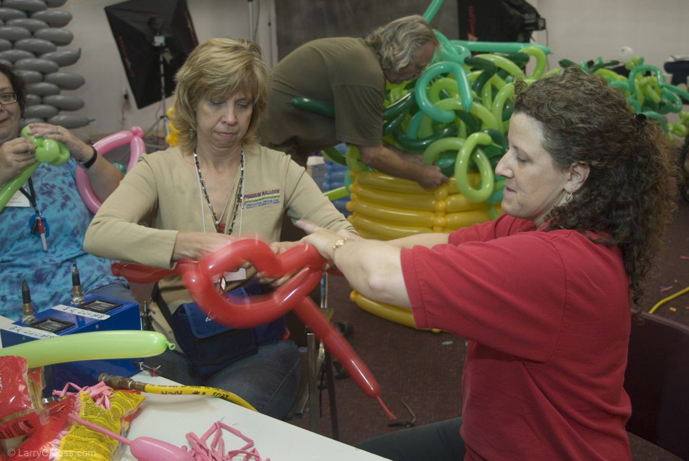Behind the scenes, we learned a lot. There was much more room to experiment than there had been on the previous big projects. We developed systems for building the big wall pieces, and learned how balloon sculptures scaled. We learned how much our existing tools could handle, and that Richard Hughson, the MacGyver of the crew was an essential team member, even if he never touched a balloon. He could fix anything, it seemed, and even started designing tools for future projects based on how things were used and, more importantly, how we broke them. He always seemed to have solutions to new problems the moment they appeared.