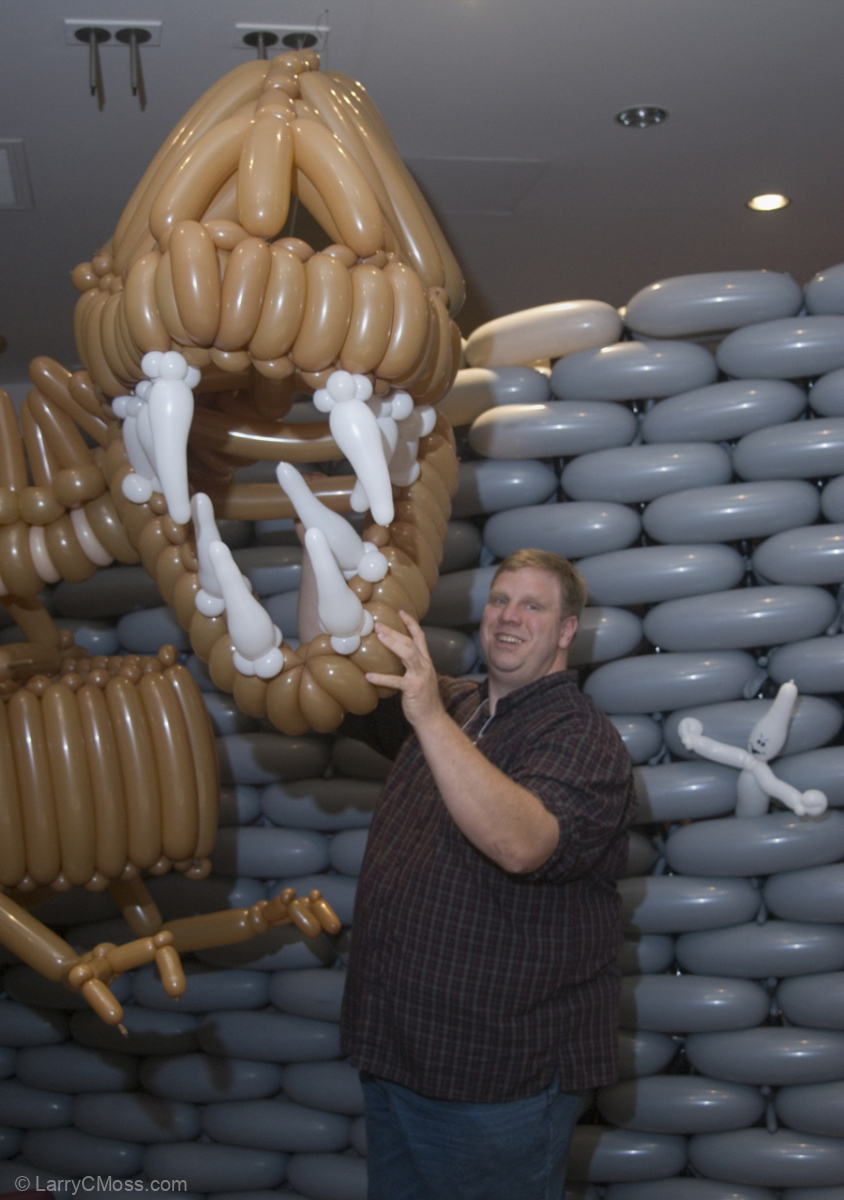 Behind the scenes, we learned a lot. There was much more room to experiment than there had been on the previous big projects. We developed systems for building the big wall pieces, and learned how balloon sculptures scaled. We learned how much our existing tools could handle, and that Richard Hughson, the MacGyver of the crew was an essential team member, even if he never touched a balloon. He could fix anything, it seemed, and even started designing tools for future projects based on how things were used and, more importantly, how we broke them. He always seemed to have solutions to new problems the moment they appeared.