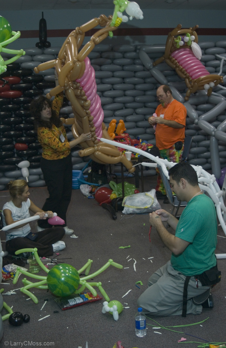Behind the scenes, we learned a lot. There was much more room to experiment than there had been on the previous big projects. We developed systems for building the big wall pieces, and learned how balloon sculptures scaled. We learned how much our existing tools could handle, and that Richard Hughson, the MacGyver of the crew was an essential team member, even if he never touched a balloon. He could fix anything, it seemed, and even started designing tools for future projects based on how things were used and, more importantly, how we broke them. He always seemed to have solutions to new problems the moment they appeared.