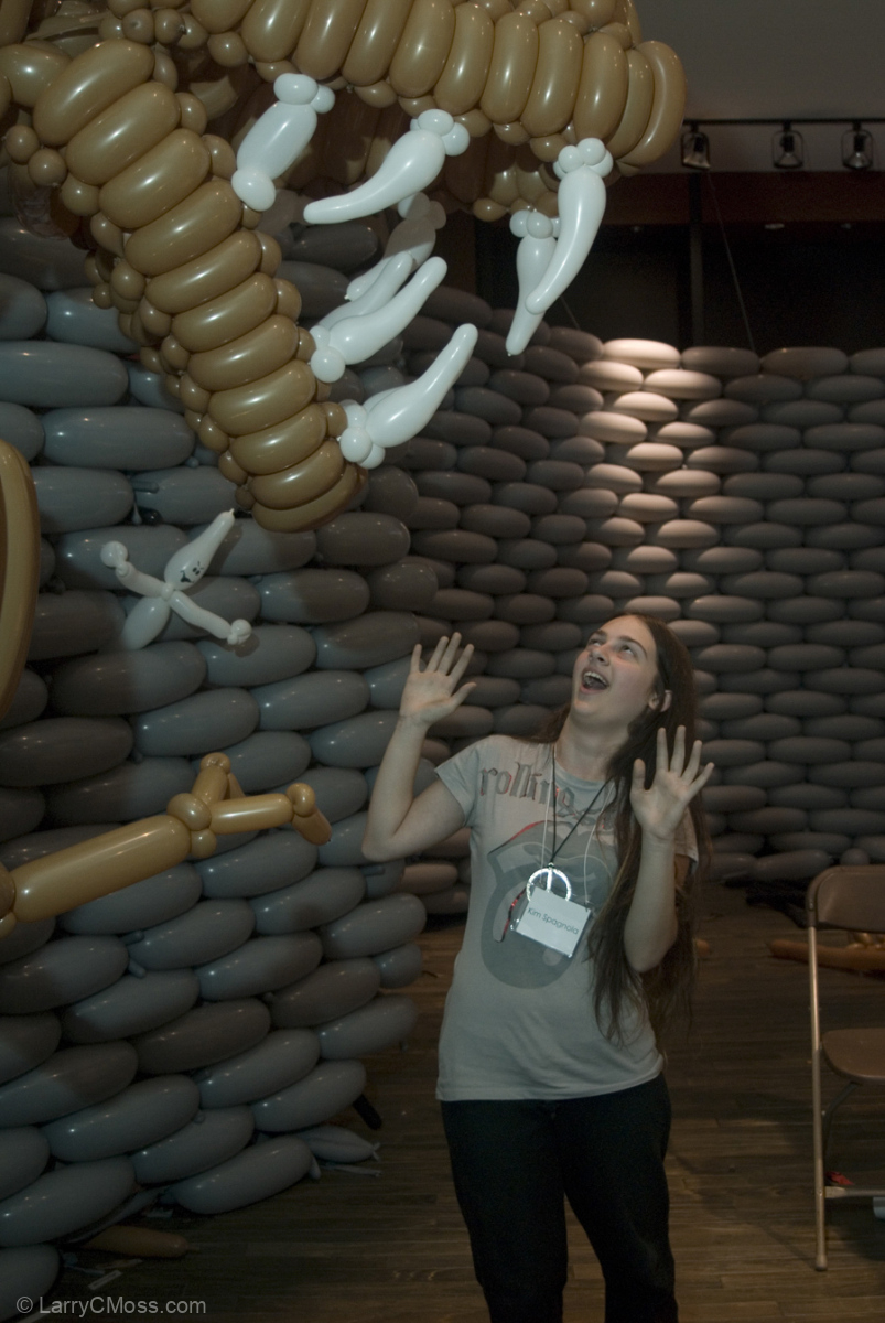 Behind the scenes, we learned a lot. There was much more room to experiment than there had been on the previous big projects. We developed systems for building the big wall pieces, and learned how balloon sculptures scaled. We learned how much our existing tools could handle, and that Richard Hughson, the MacGyver of the crew was an essential team member, even if he never touched a balloon. He could fix anything, it seemed, and even started designing tools for future projects based on how things were used and, more importantly, how we broke them. He always seemed to have solutions to new problems the moment they appeared.