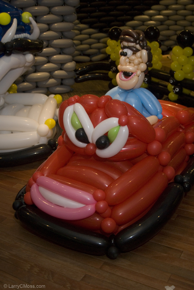 Behind the scenes, we learned a lot. There was much more room to experiment than there had been on the previous big projects. We developed systems for building the big wall pieces, and learned how balloon sculptures scaled. We learned how much our existing tools could handle, and that Richard Hughson, the MacGyver of the crew was an essential team member, even if he never touched a balloon. He could fix anything, it seemed, and even started designing tools for future projects based on how things were used and, more importantly, how we broke them. He always seemed to have solutions to new problems the moment they appeared.