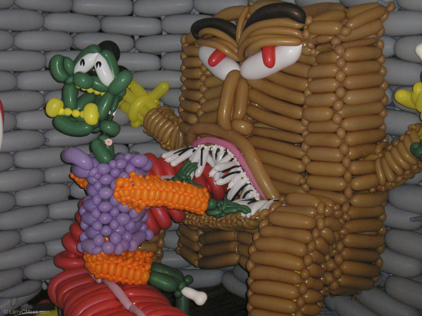 Behind the scenes, we learned a lot. There was much more room to experiment than there had been on the previous big projects. We developed systems for building the big wall pieces, and learned how balloon sculptures scaled. We learned how much our existing tools could handle, and that Richard Hughson, the MacGyver of the crew was an essential team member, even if he never touched a balloon. He could fix anything, it seemed, and even started designing tools for future projects based on how things were used and, more importantly, how we broke them. He always seemed to have solutions to new problems the moment they appeared.