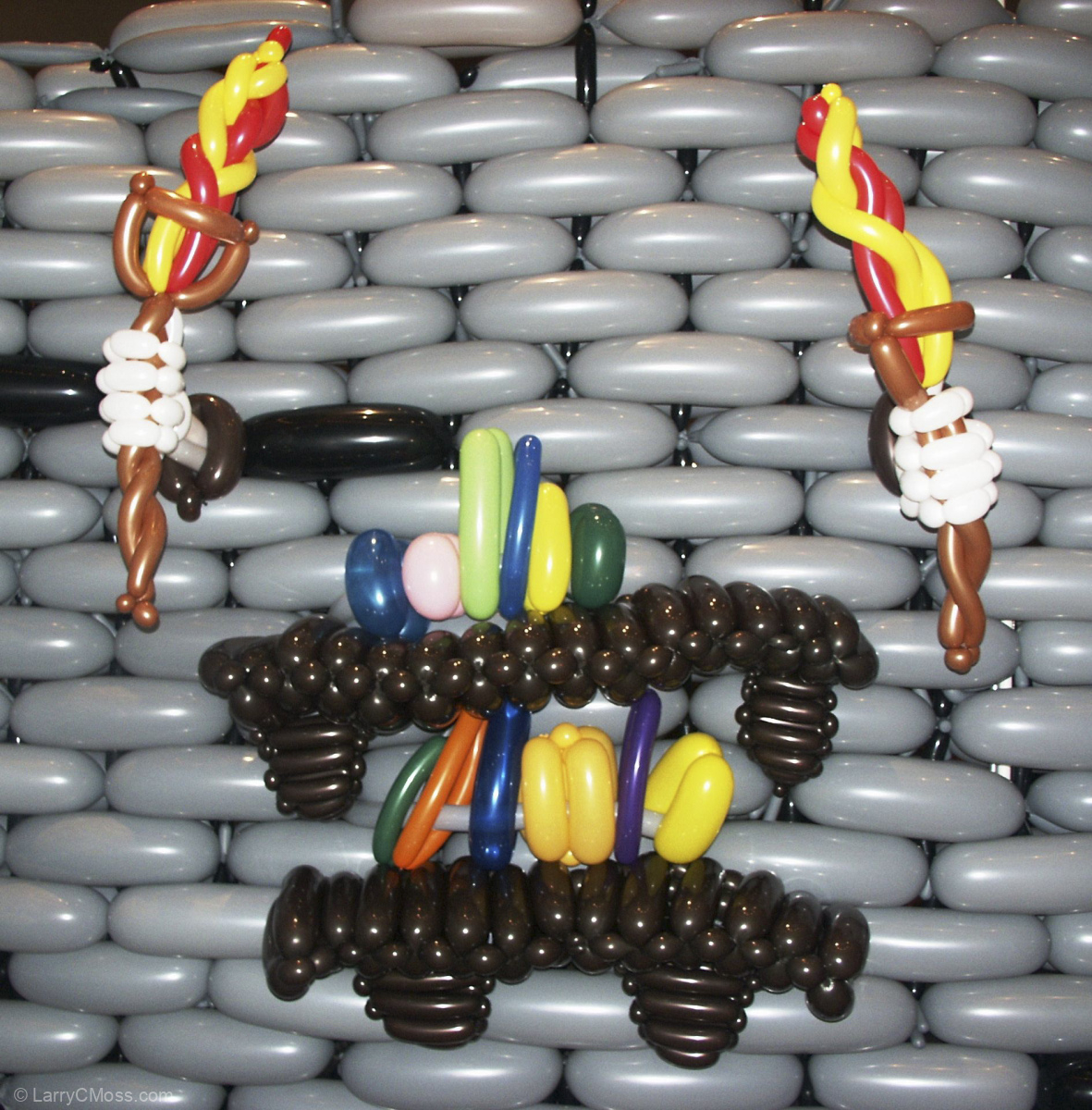 Behind the scenes, we learned a lot. There was much more room to experiment than there had been on the previous big projects. We developed systems for building the big wall pieces, and learned how balloon sculptures scaled. We learned how much our existing tools could handle, and that Richard Hughson, the MacGyver of the crew was an essential team member, even if he never touched a balloon. He could fix anything, it seemed, and even started designing tools for future projects based on how things were used and, more importantly, how we broke them. He always seemed to have solutions to new problems the moment they appeared.