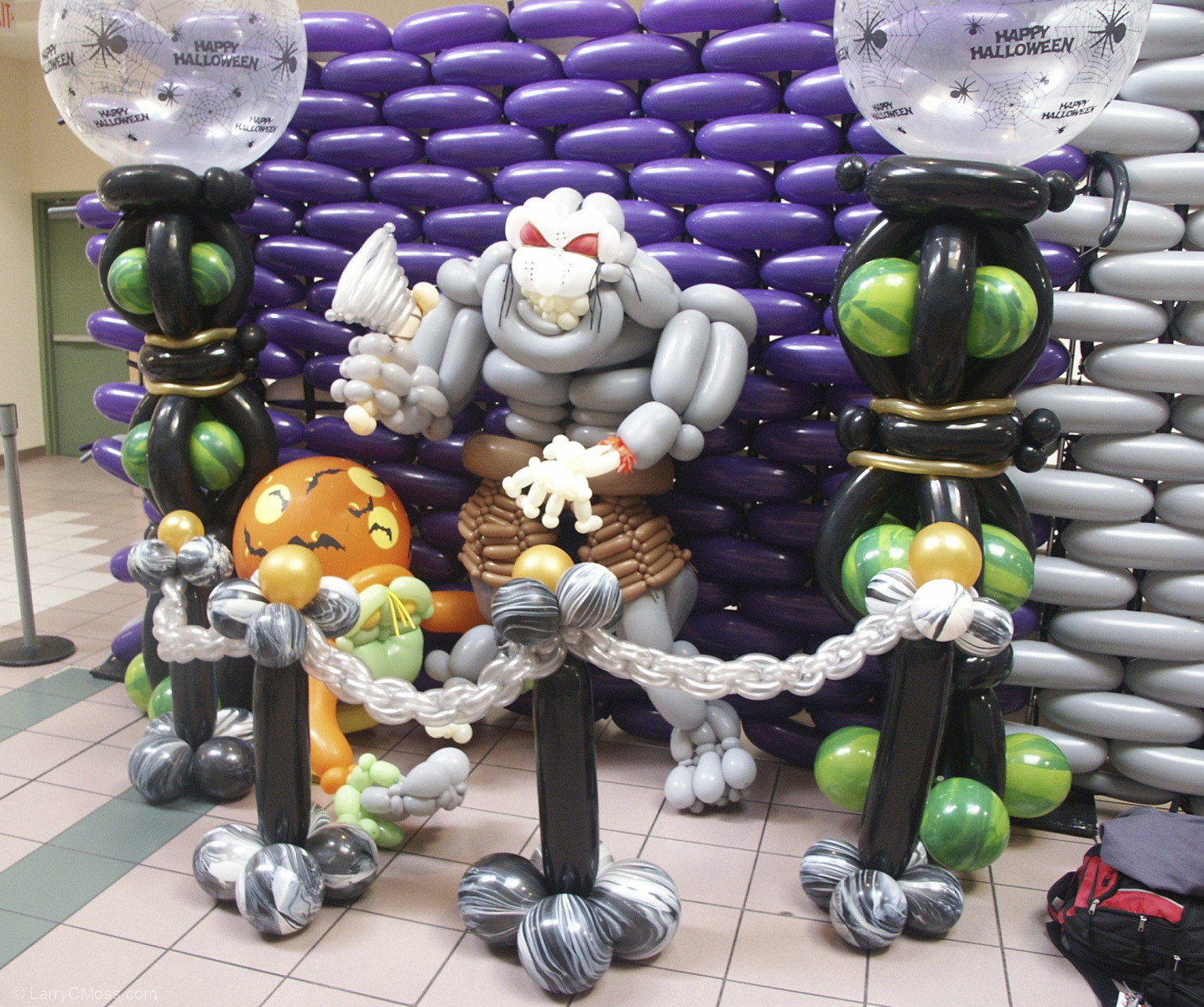 With the theme of a haunted university, we leaned hard into parody and puns. There were balloon classrooms with twisted lecture halls. Faculty lounges full of undead professors. Ghostly RAs. A balloon dormitory where every door led somewhere questionable. Grimmy, the not-so-Grim Reaper, returned again, now proudly tenured and wielding a very stylish balloon mortarboard.