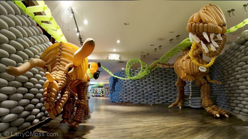 Behind the scenes, we learned a lot. There was much more room to experiment than there had been on the previous big projects. We developed systems for building the big wall pieces, and learned how balloon sculptures scaled. We learned how much our existing tools could handle, and that Richard Hughson, the MacGyver of the crew was an essential team member, even if he never touched a balloon. He could fix anything, it seemed, and even started designing tools for future projects based on how things were used and, more importantly, how we broke them. He always seemed to have solutions to new problems the moment they appeared.
